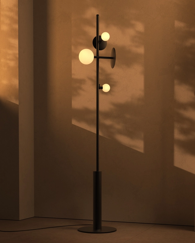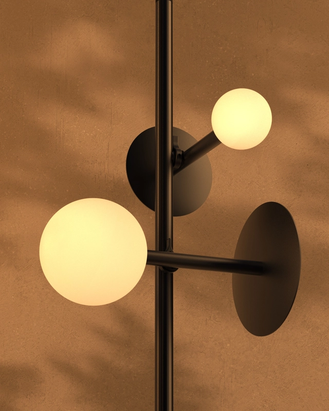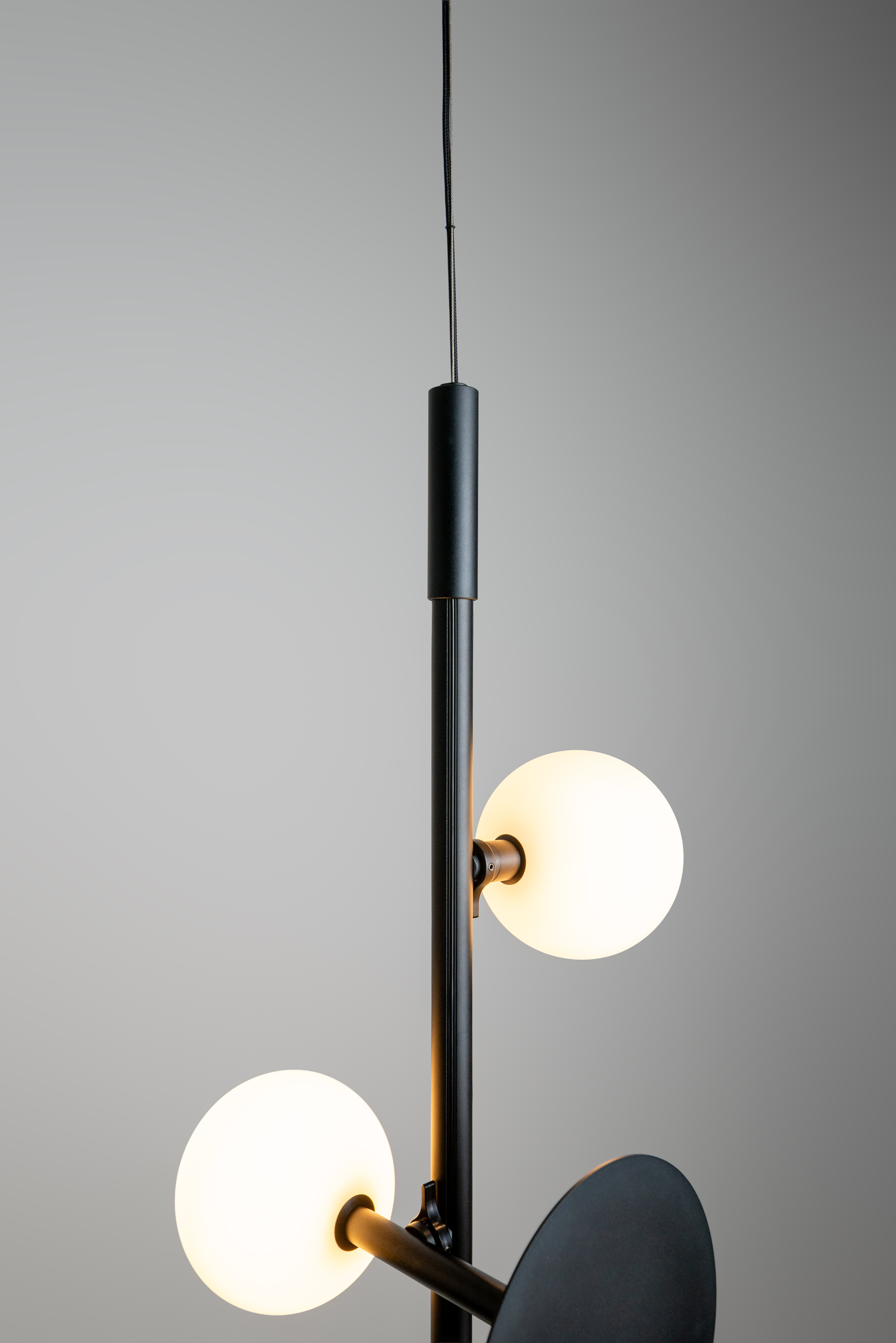 Sculpture suspended in space, the VELA collection tells a story with its planetary spheres and eclipse evoking discs. Named for the Vela constellation, the spherically formed luminaires use the Rakumba Typography rail system as the axis of an orbital space. Distinctive discs can both frame or obscure the decorative arrangement of spheres, creating an interplay of light and shadow.